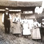 Die Eltern sind Nikolaus und Pauline (geborene?) Feger – vom Zacherhof. Von links Otto Schnetzer mit Ehefrau Maria Anna, geborene Feger, Zacherbauer Matthäus Feger, spätere Lindenwirtin Antonia Feger (also verheiratete Heitzmann), Monika Feger, geb. Hacker (vom Schulerjörgenhof) mit Ehemann Lorenz Feger Eltern von Anton Feger (der ja auch „Zacherlorenz“ genannt wurde!) – Mädchen mit Mütze Kind Rosalia Feger, verh. Baur, Mädchen mit Tracht und die beiden Buben von Schnetzers (an der Walke, neben dem „Hirschen“)