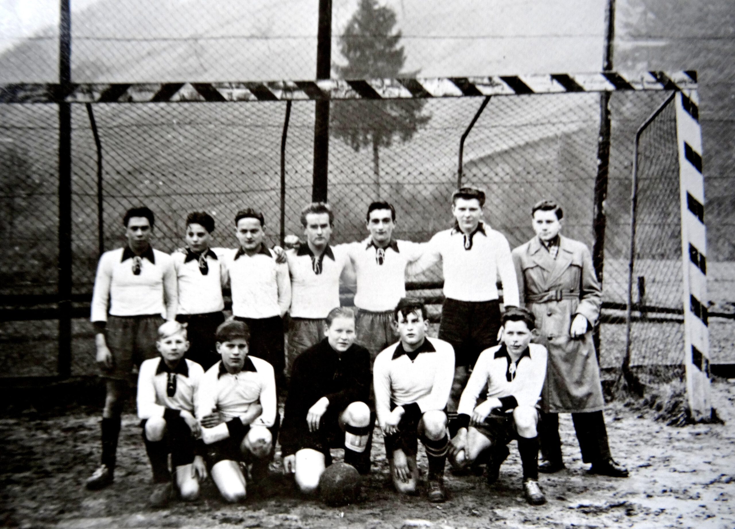732 Motorradausflügler um 1950 am Brandenkopf (Ludwig Winterer, Bernhard Schuler, Ilse Rauber, Josef Vollmer, unbekannte Person, Karl Gebert – vier Grünacher und Ilse Rauber!)