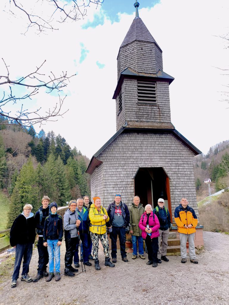 Bei schönem Wanderwetter starteten 13 Teilnehmer nach Bad-Griesbach. Über Wiesenpfade führte der Weg bequem bis unterhalb der Sommerskisprungschanze, dann weiter vorbei am Spielplatz bis zur St. Antonius-Kapelle, die liebevoll restauriert ist. Der Weg führte weiter an der ehemaligen Kurklinik St. Anna vorbei zum Pionierbrunnen und weiter durch lichte Wälder zum Magdalenenfelsen mit schroffen Felsformationen. Hier wurde eine kleine Rast eingelegt.